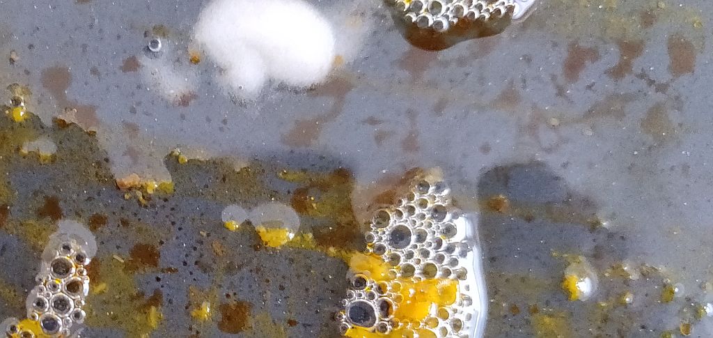 Das angebackene Blech kriegst du ruckizucki ohne viel Schrubben mit Natron sauber.