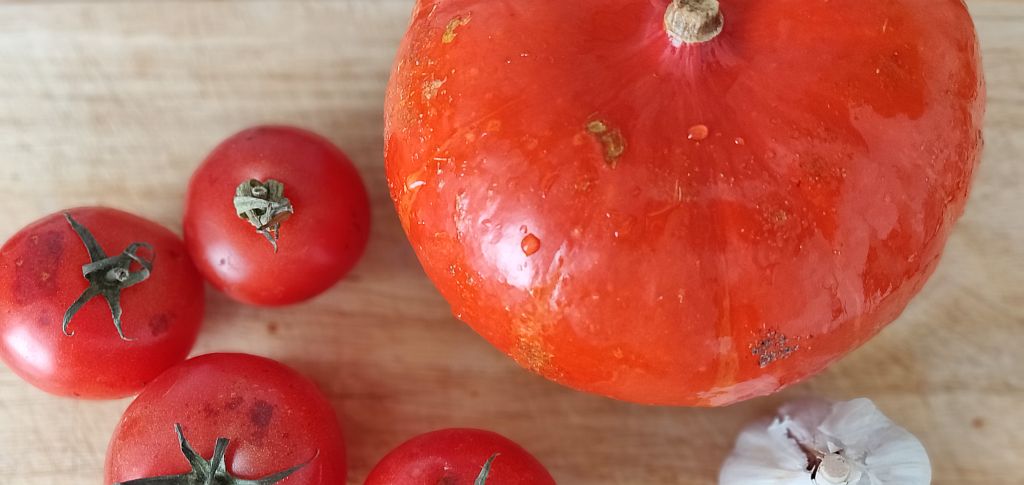 Damit zauberst du schnell und einfach ein super leckeres Gericht: Hokaido, Tomaten und Knoblauch.