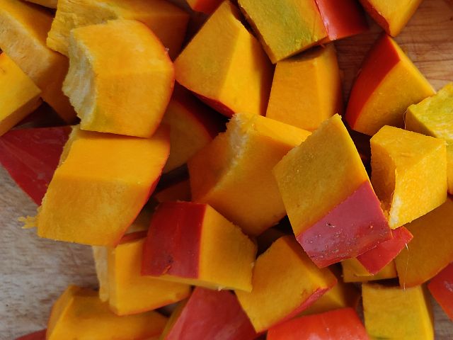 Hokaido in Würfel schneiden.